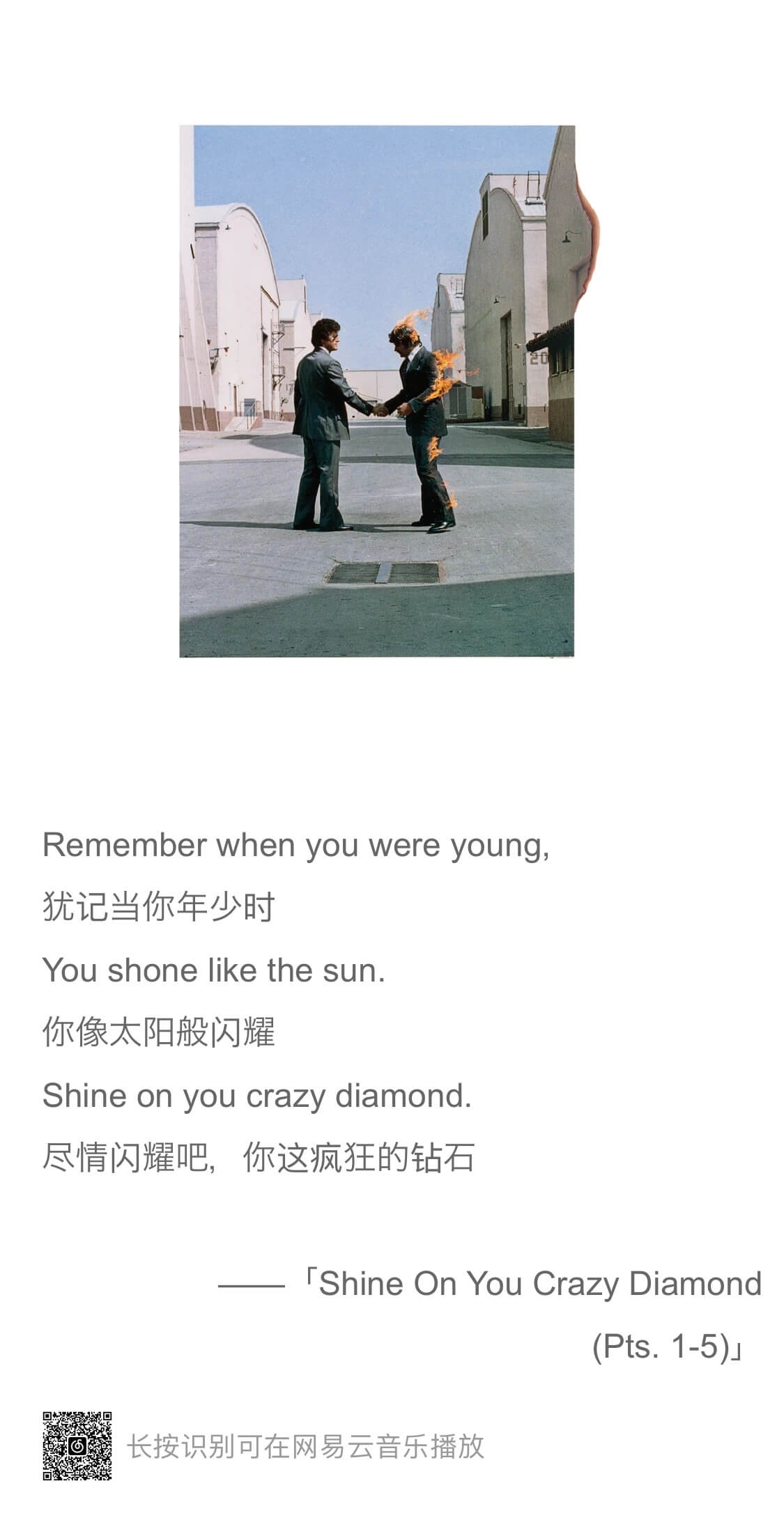 这周听的比较多的一张专辑是 Pink Floyd 的 《Wish You Were Here》