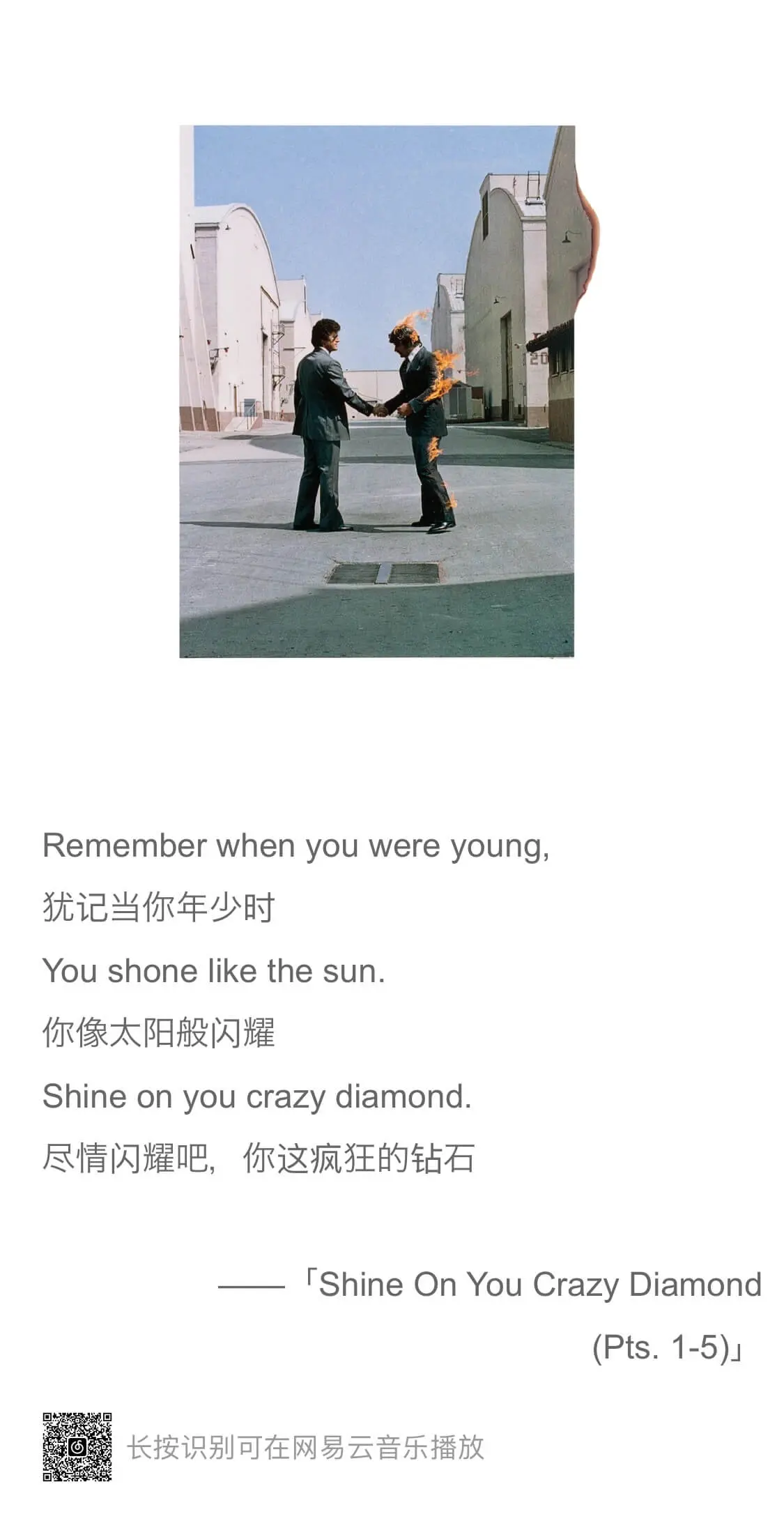 这周听的比较多的一张专辑是 Pink Floyd 的 《Wish You Were Here》。