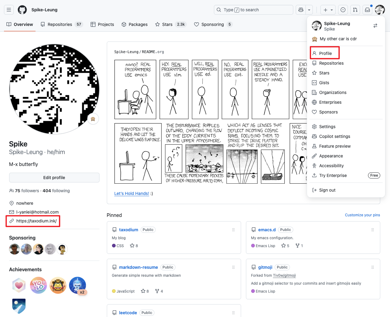 <head> <!-- 省略其他内容 --> <link href="https://github.com/spike-leung" rel="me"> <!-- 省略其他内容 --> </head>