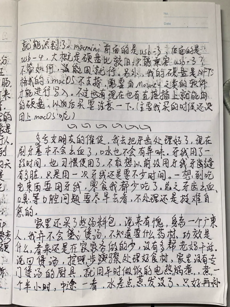 手写博客文章、跑步、牙齿、煲汤