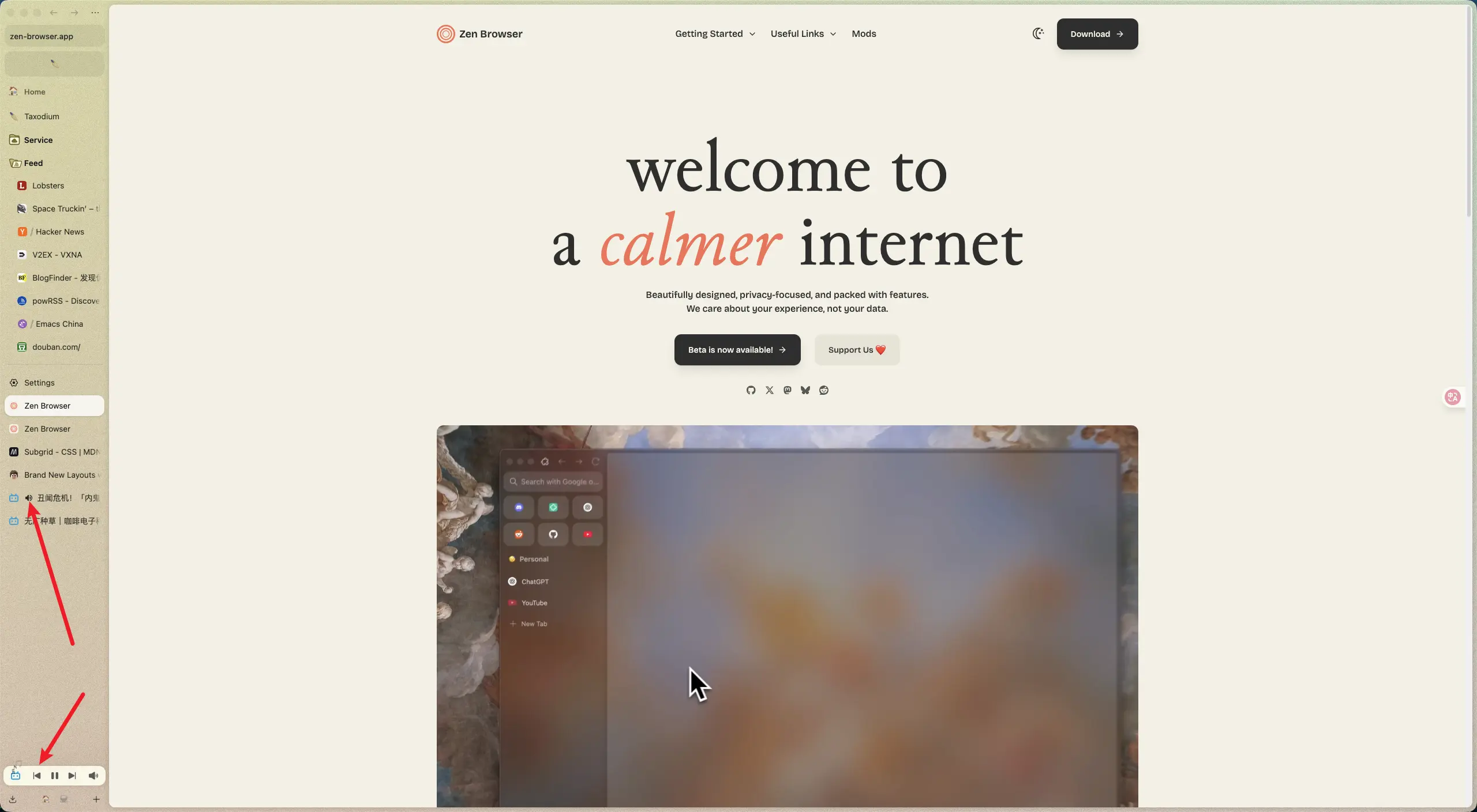 Zen 可以方便的对某个页面静音,在 Chrome 里面是需要在 tab 上右键操作的,而 Zen 直接点击一下就行。